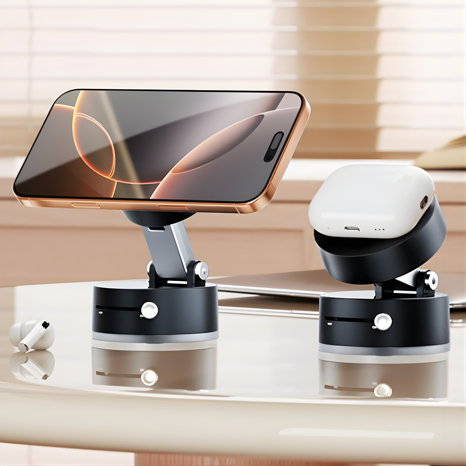 El Soporte Magnético Negro con Ventosa es la solución perfecta para mantener tu teléfono estable, seguro y siempre visible, ya sea en el tablero o en el parabrisas.