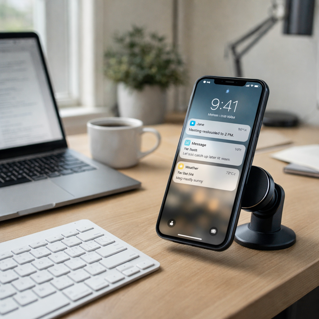 Con su imán potente y ventosa de alta adherencia, este soporte se fija firmemente al parabrisas o tablero, evitando caídas y movimientos.